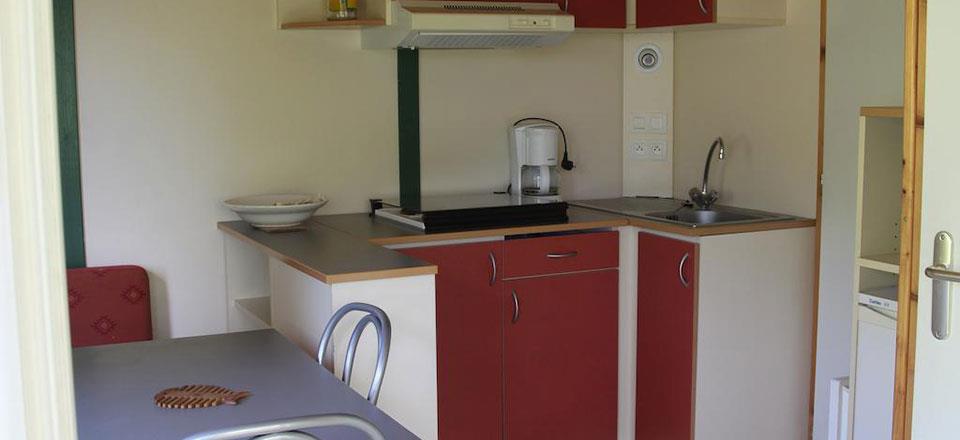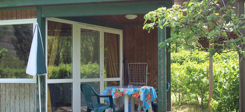 Les chalets 2 personnes sont tous équipés d'une chambre avec un lit double (140 cm), d'un coin cuisine équipée avec séjour 1 couchage, d'une salle d'eau avec douche, lavabo et WC. Ainsi qu'une terrasse couverte de 5 m² avec salon de jardin.